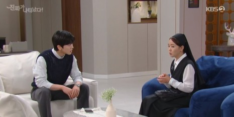 수녀복을 입고 나타난 그녀는 동생에게 기부를 권했고, 준하는 짜증 내며 자리를 떠나버렸습니다.