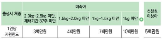 - 미숙아 : 출생 후 24시간 이내에 신생아중환자실(NICU)에 입원한 경우